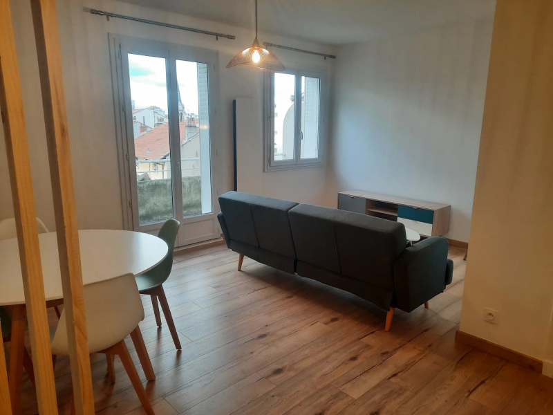 VALENCE - A proximité du centre-ville, appartement meublé de type 2 de 52 m2  au 4ème et dernier étage avec ascenseur comprenant une pièce de vie donnant accès à un balcon exposé Ouest avec vue dégagée, une cuisine indépendante aménagée et équipée, une salle d'eau, une chambre.