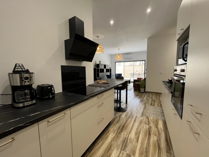 Vous profiterez d’une entrée fonctionnelle avec rangements, d’une cuisine aménagée et parfaitement équipée accompagnée de son cellier-buanderie, ainsi que d’un agréable salon/séjour ouvert sur une spacieuse terrasse, parfaite pour vos moments de détente.