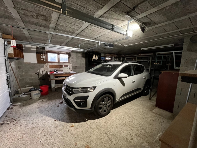 Un grand garage avec porte motorisée vient compléter ce bien, idéal pour le stationnement et le rangement.