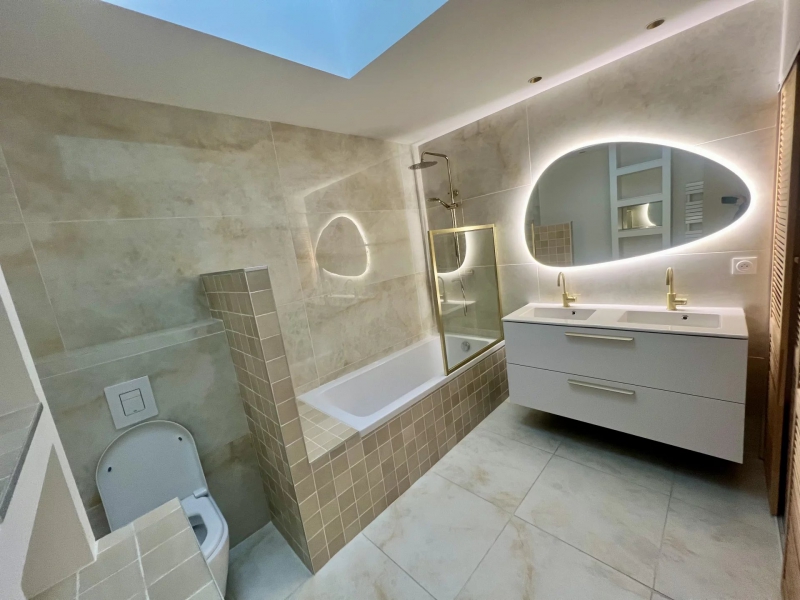 Au 1er étage, 3 belles chambres, une salle de bains avec WC et un grand dressing.